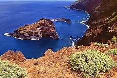 Küstenwanderung im einsamen Nordwesten von Garafia nach El PalmarOberhalb der Kirche am linken Ende des Dorfplatzes (Parken bei der Apotheke) beginnt ein sehr schöner Küstenwanderweg (Teil des Weitwanderweges GR 130) zuerst durch den Barranco de la Luz mit hohen Lavawänden und sehr schöner Vegetation (Drachenbäume), dann rechts vorbei an einem einsamen Bauernhof mit altem Drachenbaum. Ab hier führt ein herrlicher Panoramaweg parallel zur Küste nach El Palmar, einem verlassenen Nest, dann weiter nach El Tablado.Entweder in El Palmar umkehren oder von El Tablado zurück ein Taxi nehmen. Wanderzeiten: Garafia -> El Palmar ca 1 1/2 Stunden, El Palmar -> El Tablado weitere 4 Std. | ![]() |