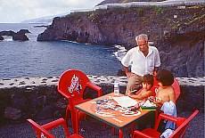 ![]() Danach kann man sich bei einem guten Fischgericht am Kiosko Punta Larga stärken oder gleich zum Baden an die Playa y Bajas de la Zamora weiterfahren. Auch hier gibt es einen Kiosko Zamora mit sehr guten und preiswerten Fischgerichten. Treppen führen steil hinunter zum Meer. | ![]() |