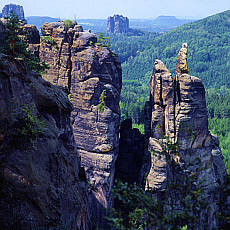 Tyssaer Wände (Tiské stěny)Bizarre Felsformationen wie das Kamel, der Apotheker oder der Steinpilz sind das Highlight der Tyssaer Wände am Rand der Gemeinde Tissa (Tisá) im tschechischen Teil der Böhmischen Schweiz. |